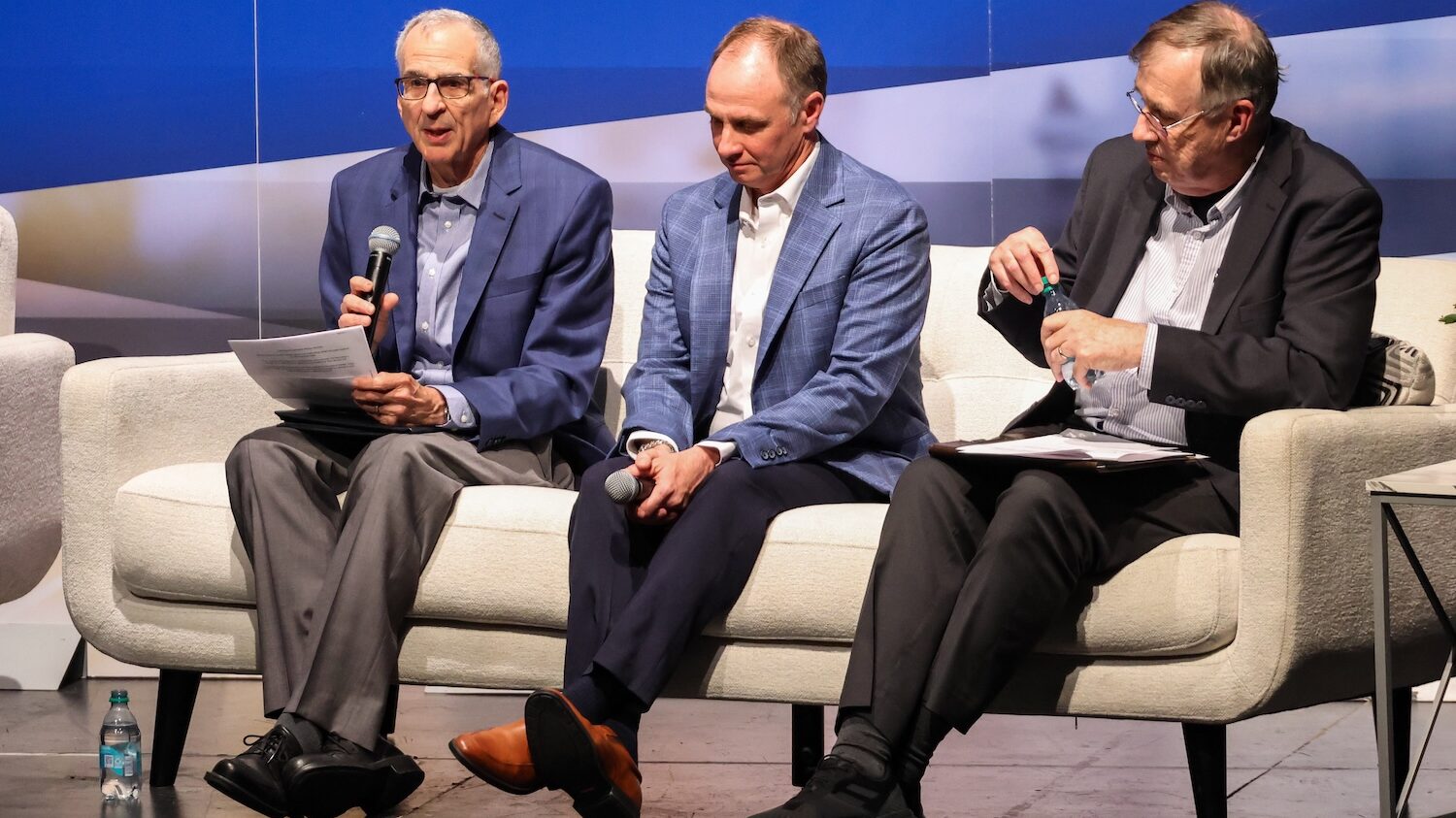 Panelists speak to the crowd during The Blade’s Perspectives series: “Tariffs and Trade in the Modern Age” at the University of Toledo’s Doermann Theatre in downtown Toledo on Wednesday, June 11, 2025.Mark Sniderman, Vice President and Chief Policy Officer ad Federal Reserve Bank of Cleveland, left, speaks during The Blade’s Perspectives series: “Tariffs and Trade in the Modern Age” at the University of Toledo’s Doermann Theatre in downtown Toledo on Wednesday, June 11, 2025.